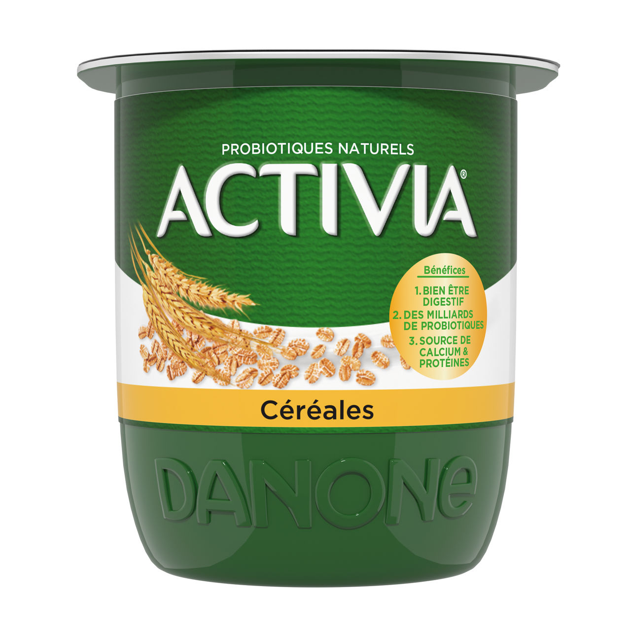 Lait écrémé, préparations céréales, crème, sucre, poudre de lait écrémé, épaississants (amidons), ferments lactiques du yaourt et bifidobacterium.