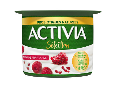Lait écrémé, poudre de lait écrémé, sucre, crème, Gomme Arabique (Fibre alimentaire), beurre, épaississant (Amidon), ferments lactiques dont bifidobacterium (bifidus actiregularis) MG : 1,2%.