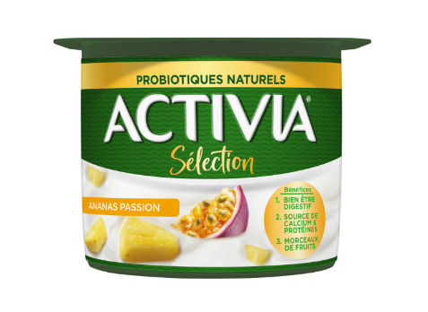 Lait écrémé, préparations Ananas passion (4,59%) , crème, sucre , poudre de lait écrémé, épaississants (amidons) , arômes, ferments lactiques du yaourt et bifidobacterium. MG 3,2%