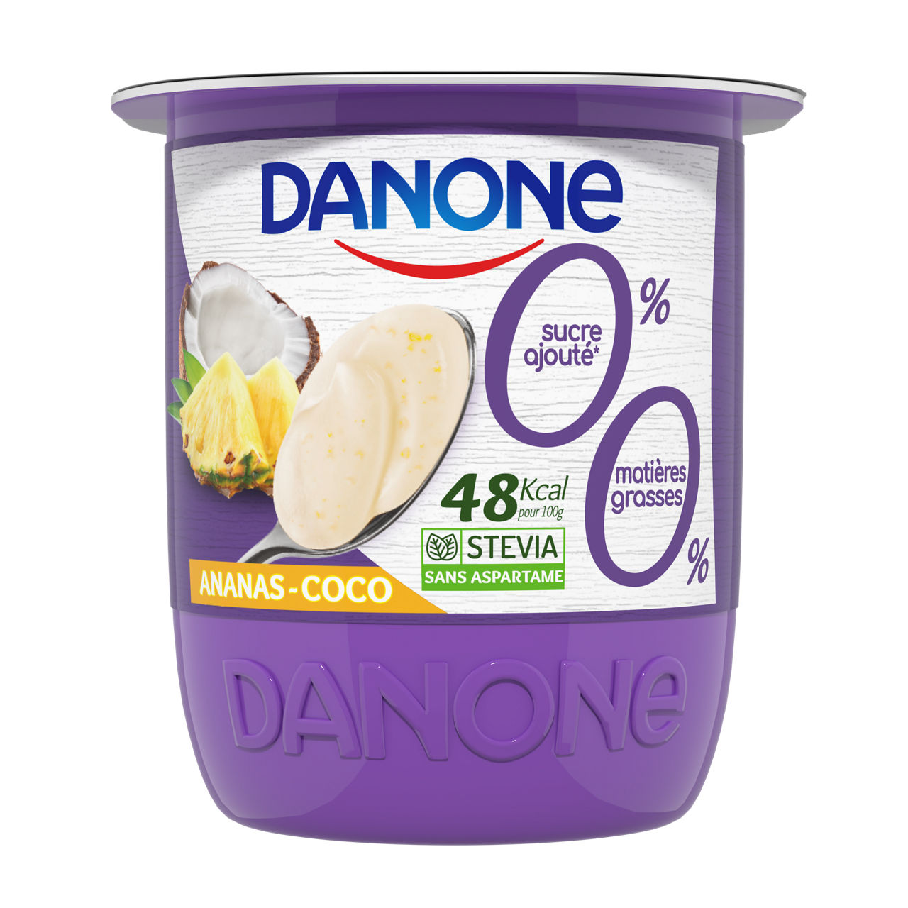 Lait écrémé, poudre de lait écrémé, préparations de fruits, épaississants (amidons), lactoserum, aromes, édulcorant Stévia, ferments lactiques du yaourt, colorants naturel (Curcumine).