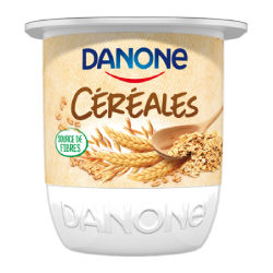 Lait écrémé, préparation céréalière, sucre, poudre de lait écrémé, crème, épaissisants (amidons), beurre, matière grasse végétale (noix de coco), lactose, aromes, colorant naturel (caramel ), sel alimentaire, ferment lactiques du yaourt.